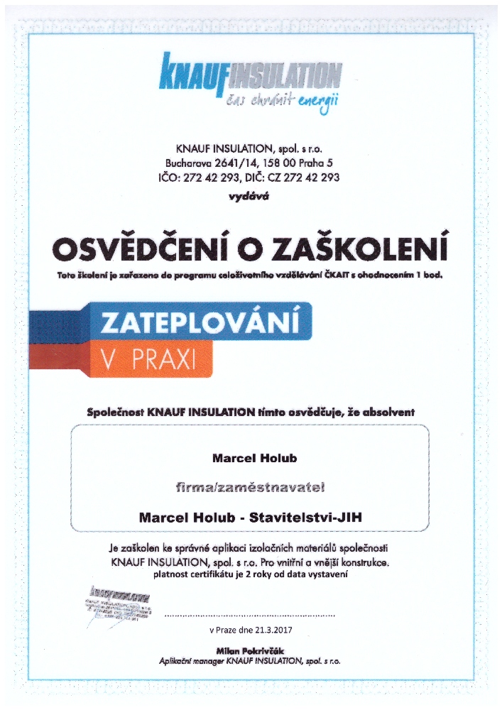 Snažíme se neustále vzdělávat a zdokonalovat v použití nových materiálů a postupů a technologií: