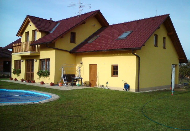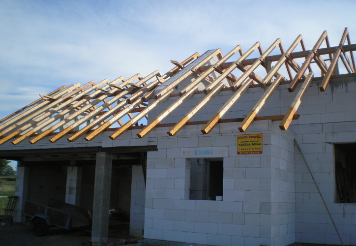 Kompletní stavba od základů po střechu . Dodání dřevěných schodů . Doba trvání stavby 8 měsíců .