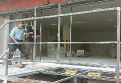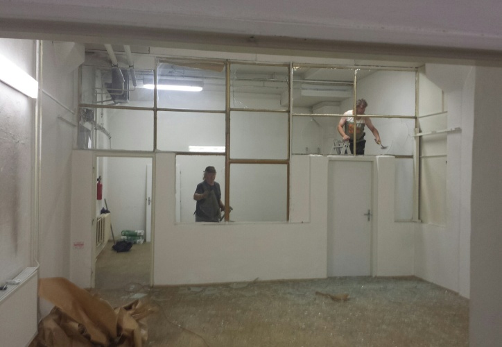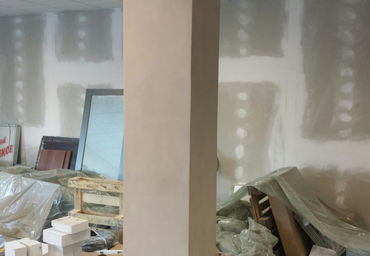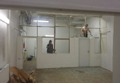 Úprava skladových prostor , vybudování prodejny , vybudování přechodu přes výtahovou šachtu, kompletní rekonstrukce elektroinstalace a odpadů, úprava vstupních prostor .